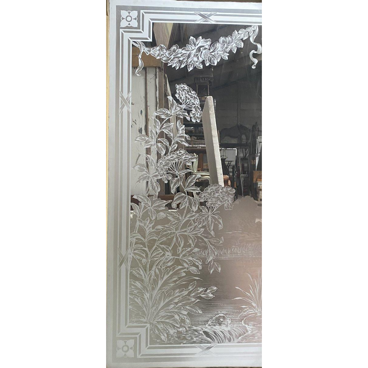 Gegraveerd glas: H 115 × B 52 cm