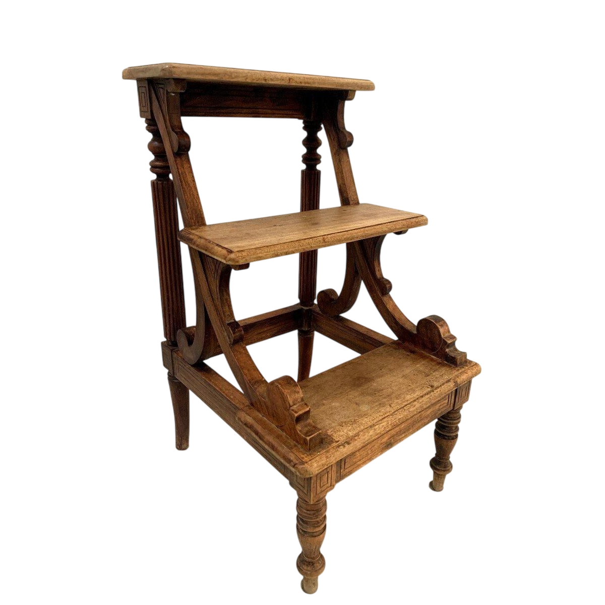 Bibliotheektrap van gebeitst hout met drie treden – 19e eeuw