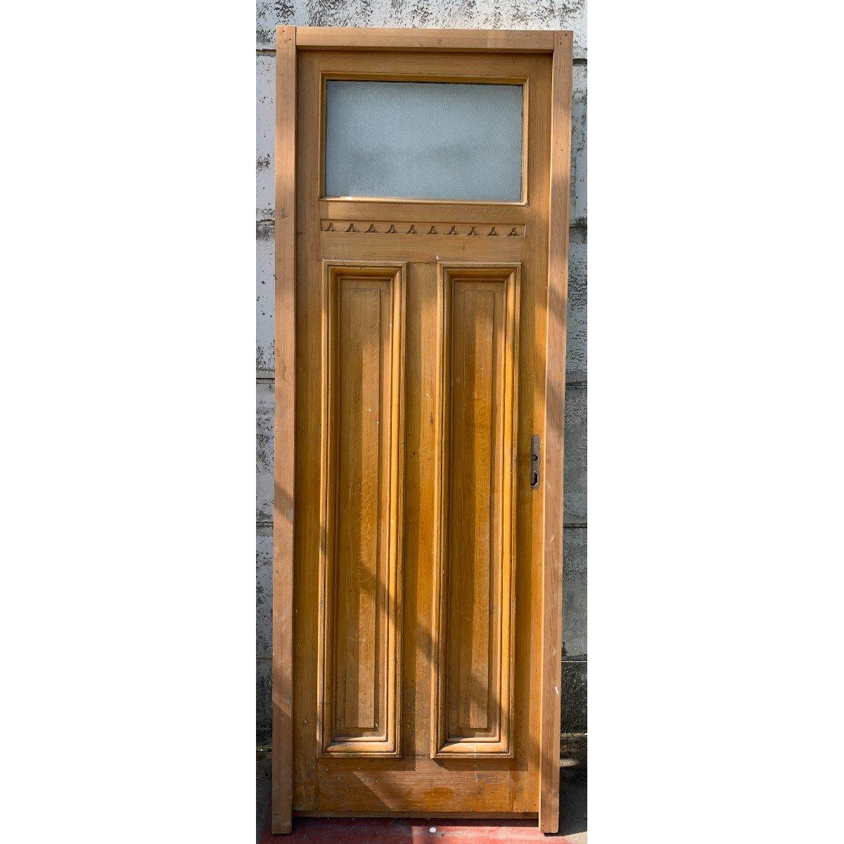 Art Deco-doorgangsdeur van gepatineerd sparrenhout.