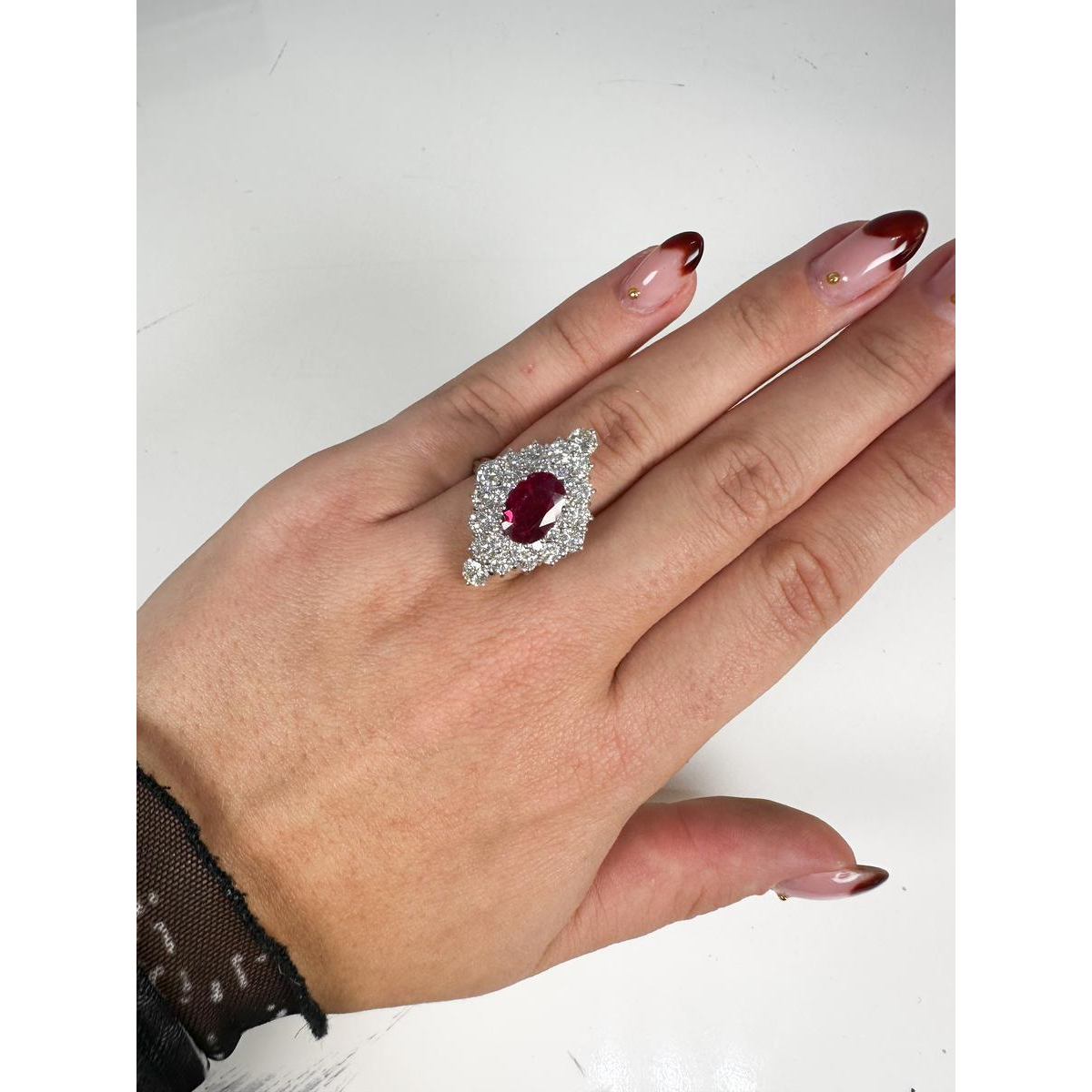 Ring in witgoud, diamanten en een centrale robijn van 2,57 karaat.