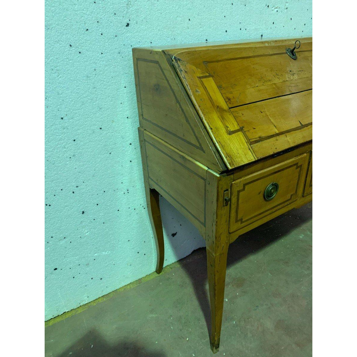 Bureau in Lodewijk XV-stijl met schuin front, vervaardigd uit massief kersenhout – 19e eeuw