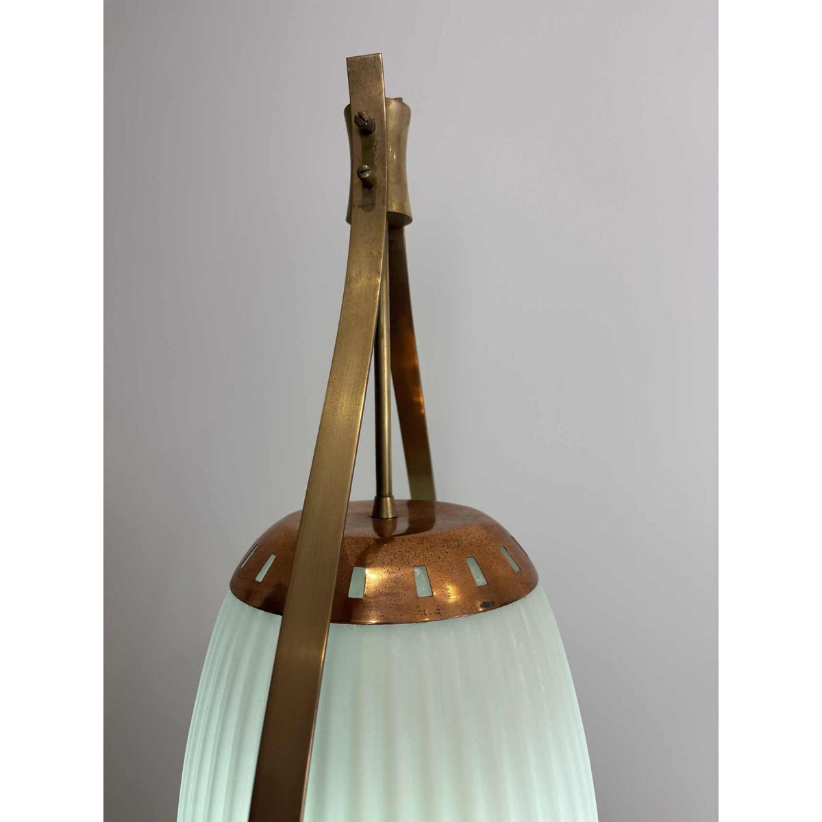 Mid-eeuwse vloerlamp, opaline Murano glas & messing, stijl of Angelo Lelii voor Arredoluce, Italië ca 1950