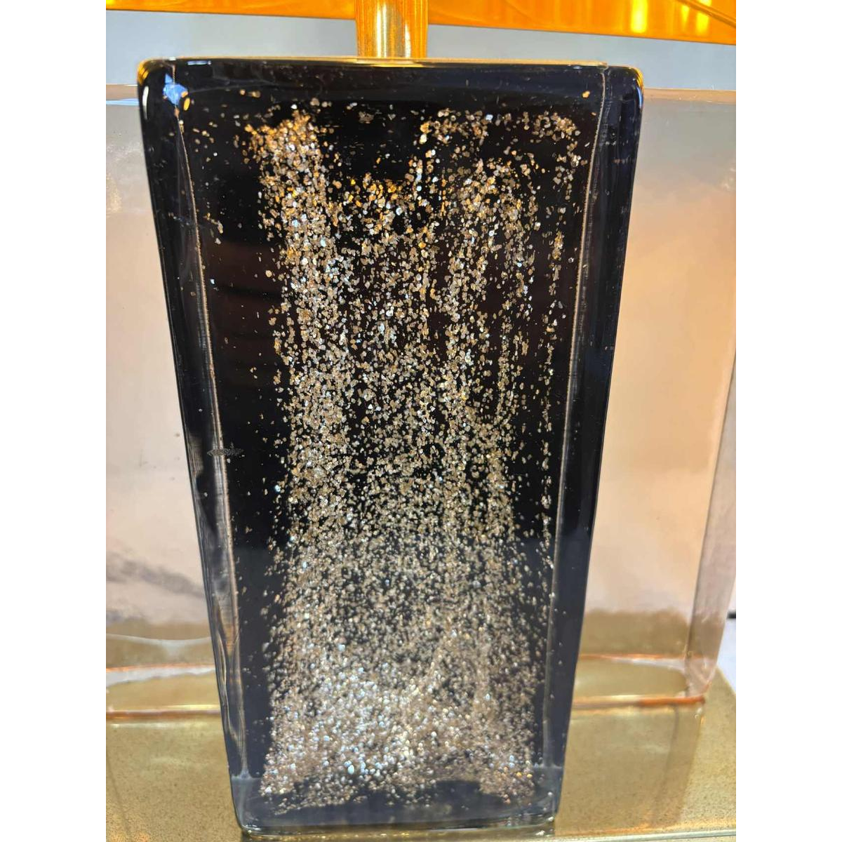 Spectaculair paar Italiaanse lampen van geblazen Murano glas, ingelegd met gouden vlokken.