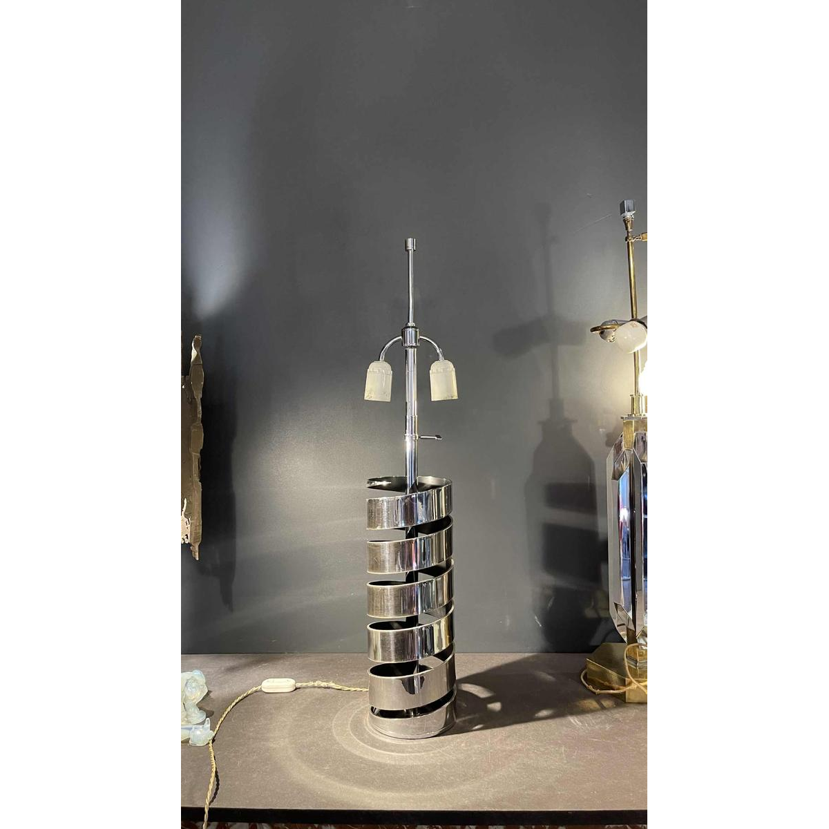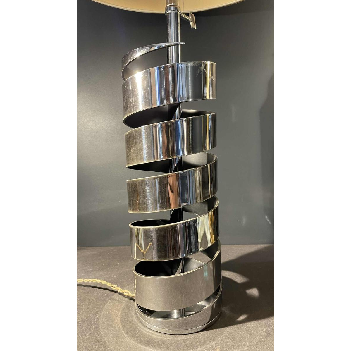 JACQUES CHARPENTIER, grote spiraal-/veerlamp, verchroomd metaal, 1972