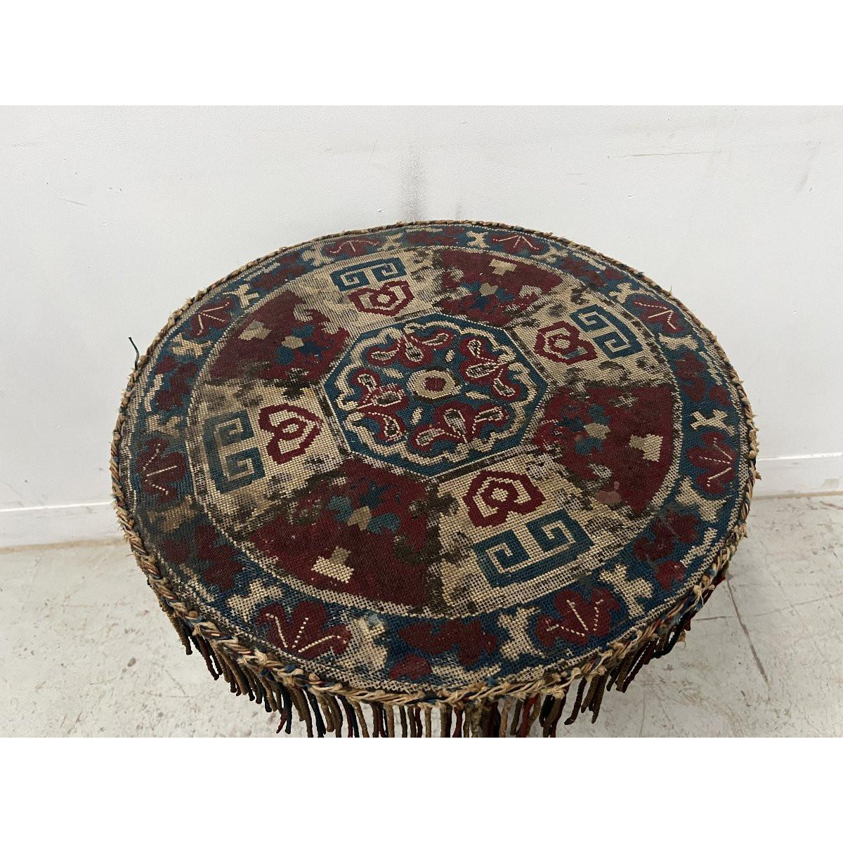 Dienblad bedekt met een tapijtje met kleine stippen (moet schoongemaakt worden).