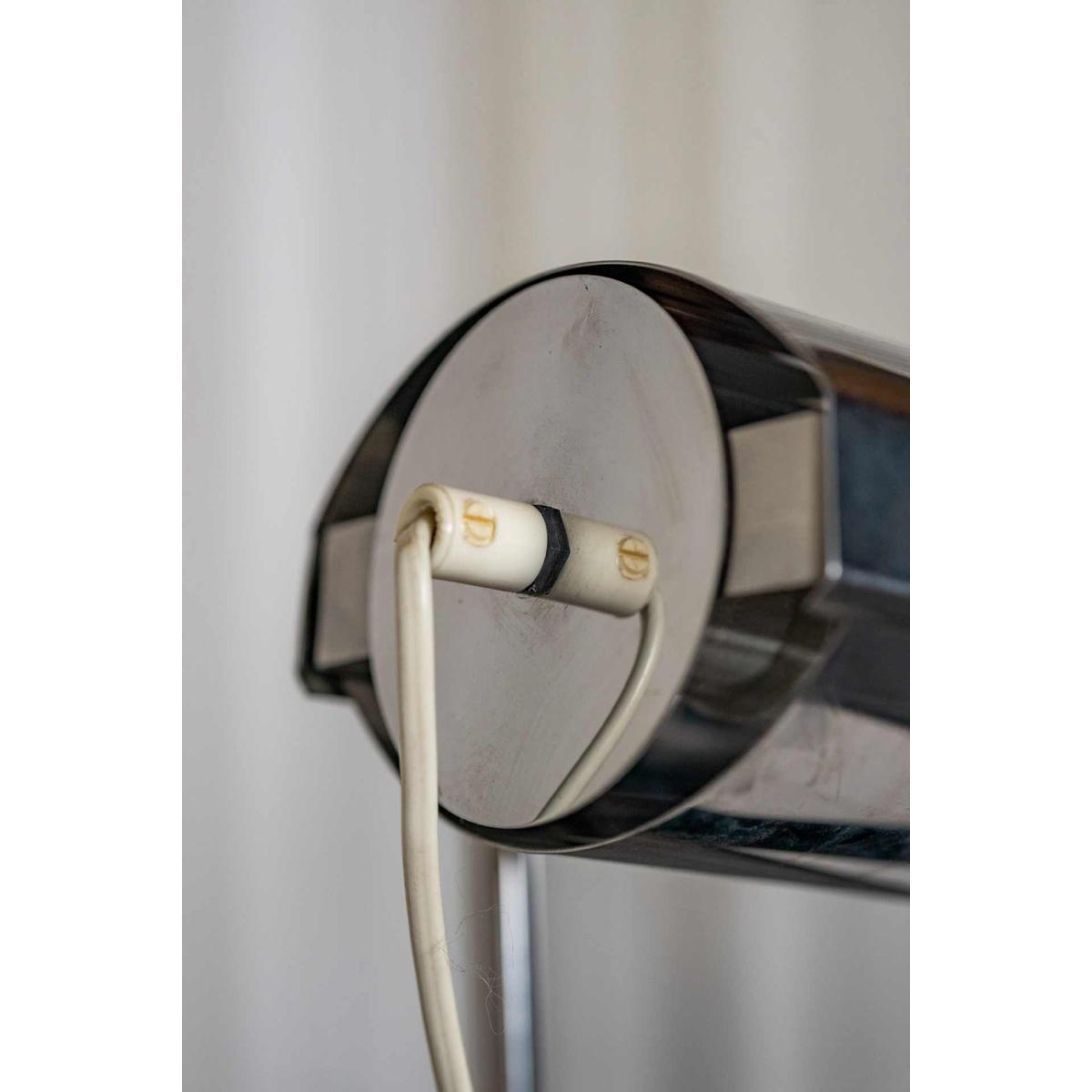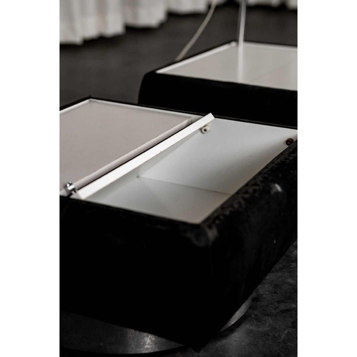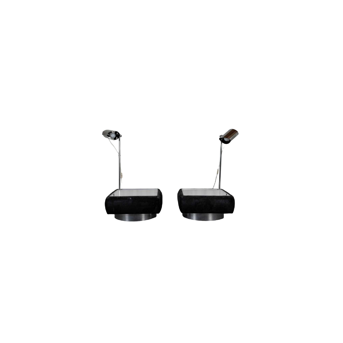 Paar van 2 bijzettafels met geïntegreerde lamp, Space Age Design, chroom en zwart alcantara, ca 1980