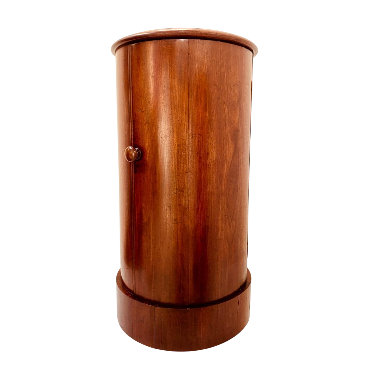 Cilindervormig nachtkastje met een deur.