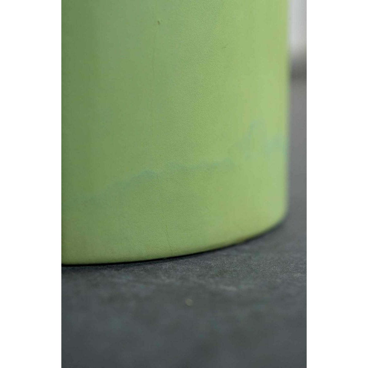 Set van 2 salontafels met een centrale ton bekleed met matchagroen leer en een dik blad van gerookt plexiglas.