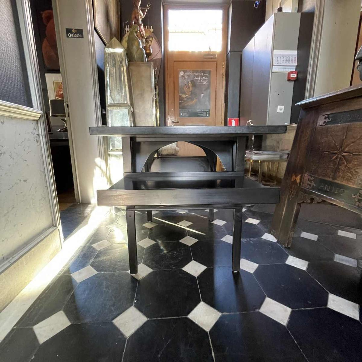 Modernistisch bureau met eenvoudige en zuivere lijnen, het resultaat van een samenwerking tussen Achille Castiglioni en Paolo Ferrari editie BBB Bonachina Italia in 1982, dat doet denken aan het modernisme van de "Zig Zag stoel" en de fauteuil van Gerrit Rietveld...