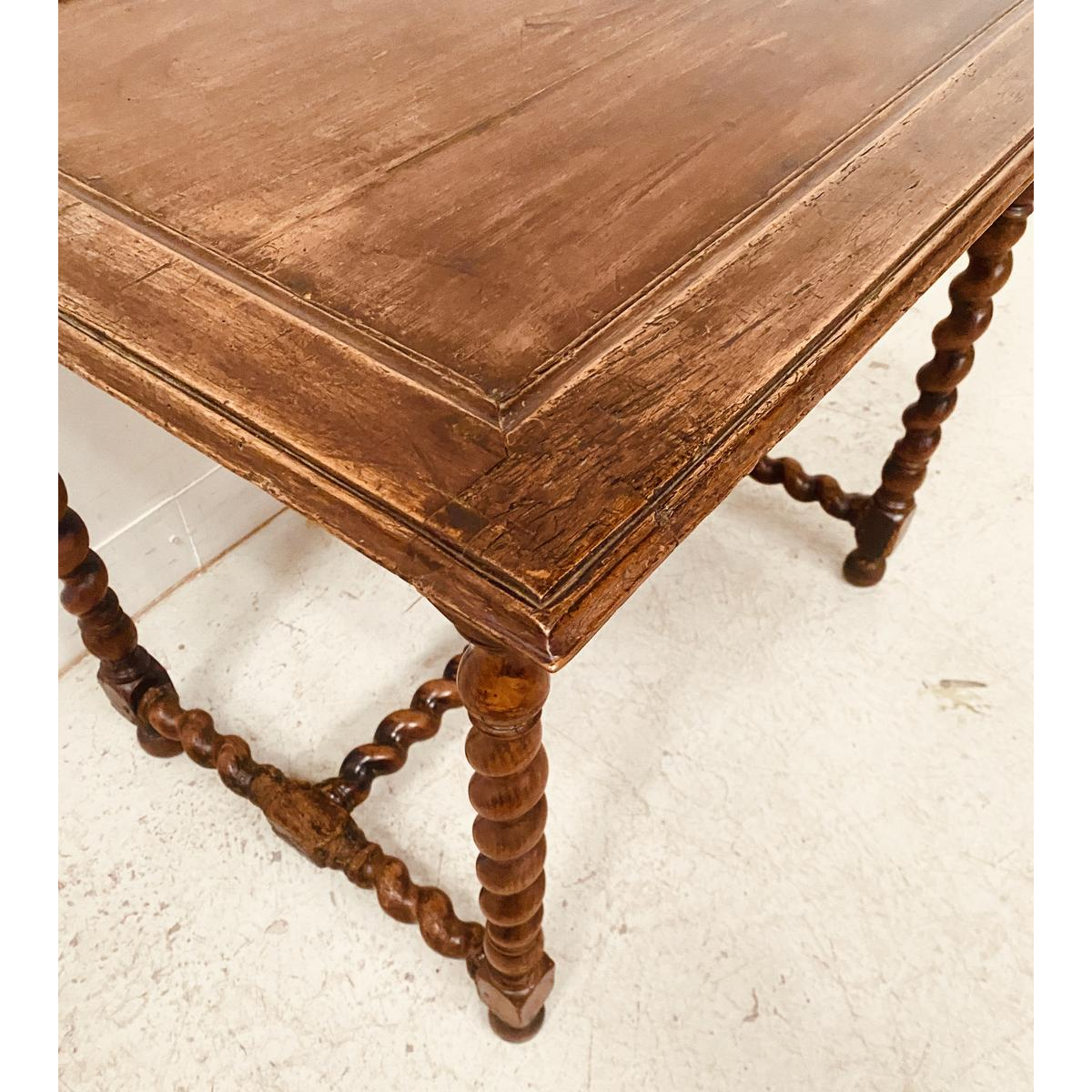 Bijzettafel van walnotenhout, rustend op vier gedraaide poten.