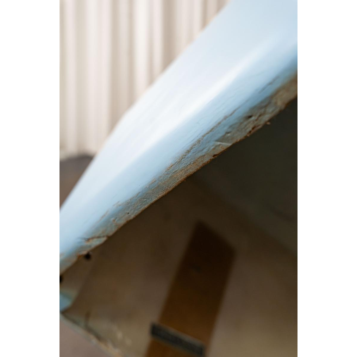 Bijzettafel van Milo Baughman voor Thayer Coggin, jaren 80. Deze bijzettafel met afgeronde hoeken is opnieuw afgewerkt in hemelsblauw.
