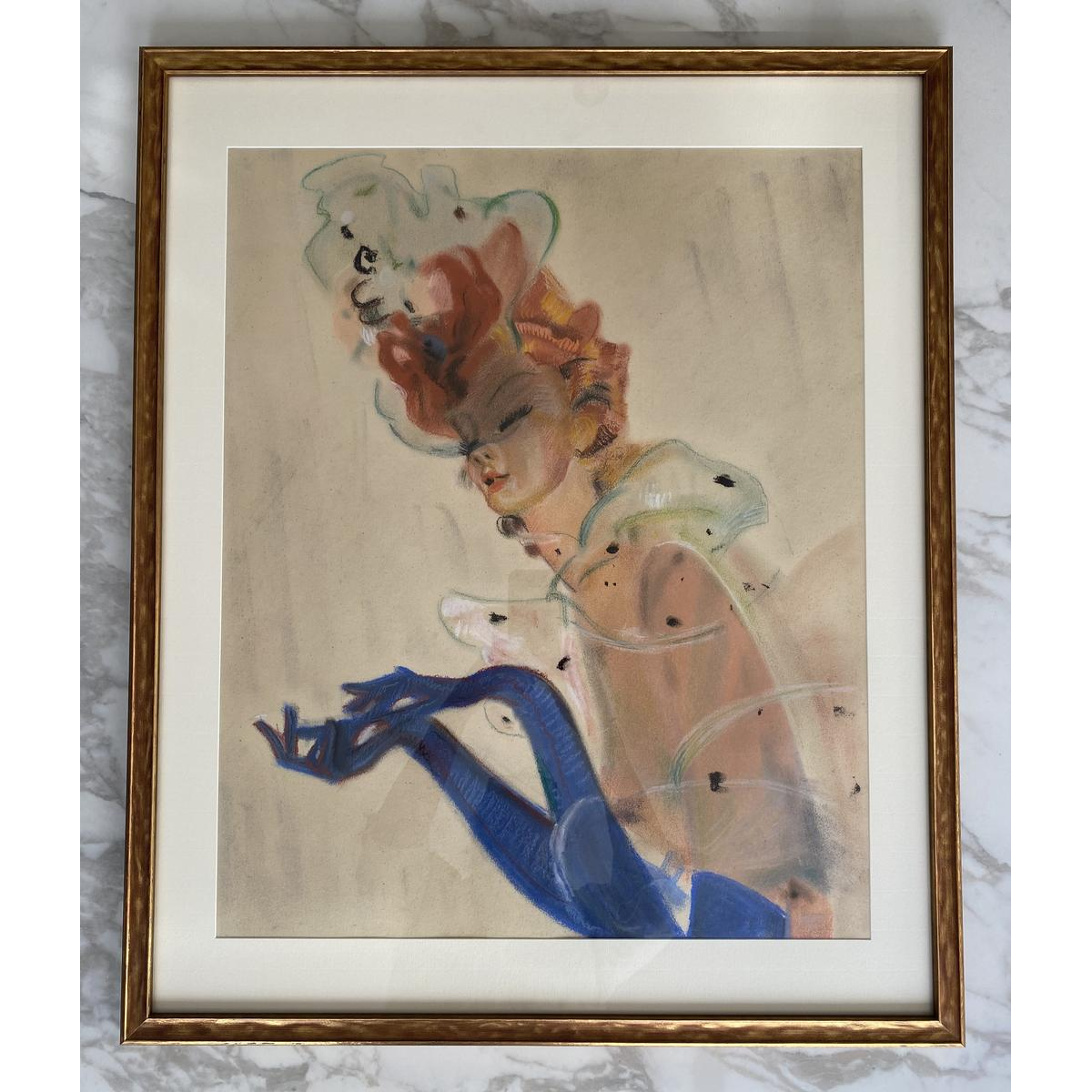 Jean-Gabriel Domergue (toegeschreven aan) "Elegante" pasteltekening op papier