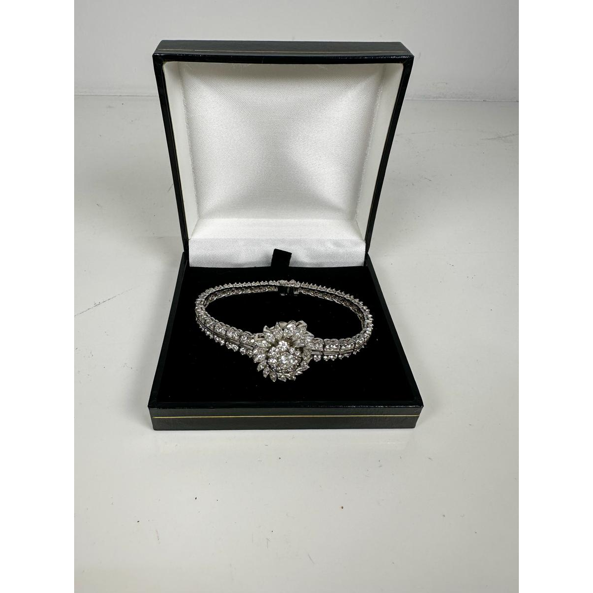 Mathey-Tissot diamanten horloge. De wijzerplaat is bedekt met een diamanten laag met een veermechanisme, waardoor het horloge, wanneer gedragen, de uitstraling van een armband heeft; 33,6 g