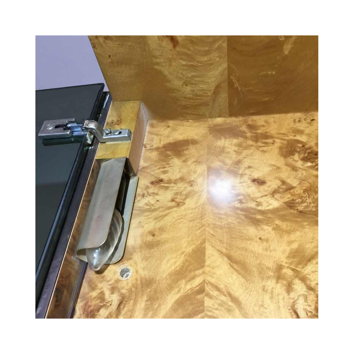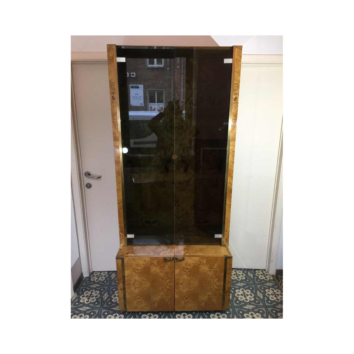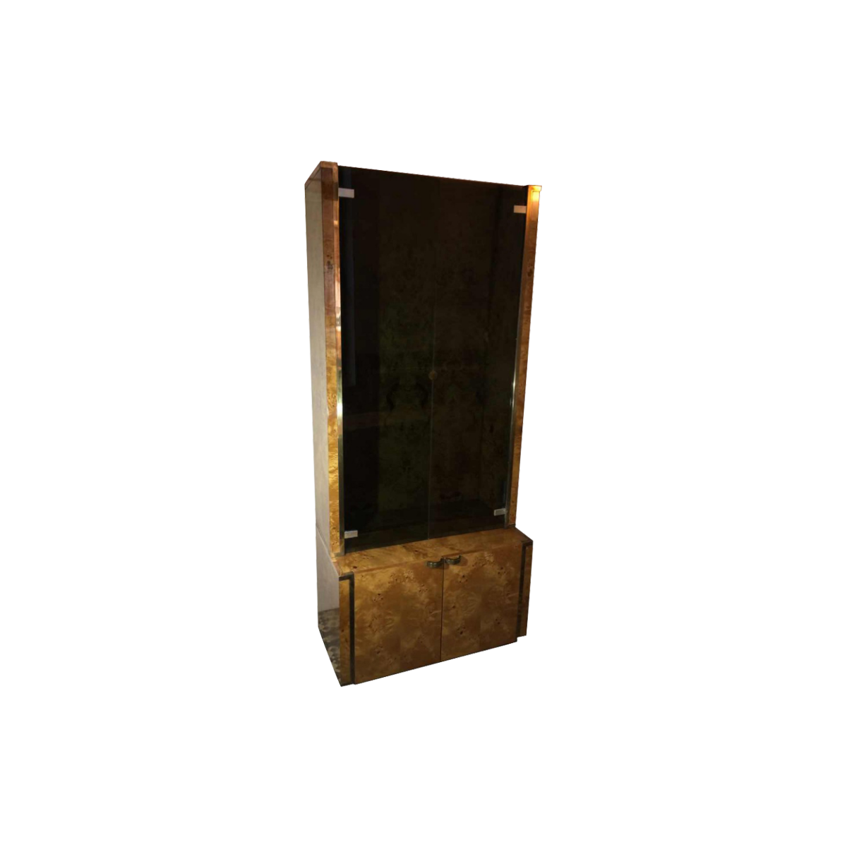 This form is only used to notify us of illegal content on product: WILLY RIZZO voor MARIO SABOT, Boekenkast Display Plank, Walnoot Burl & Brass, ca. 1970.