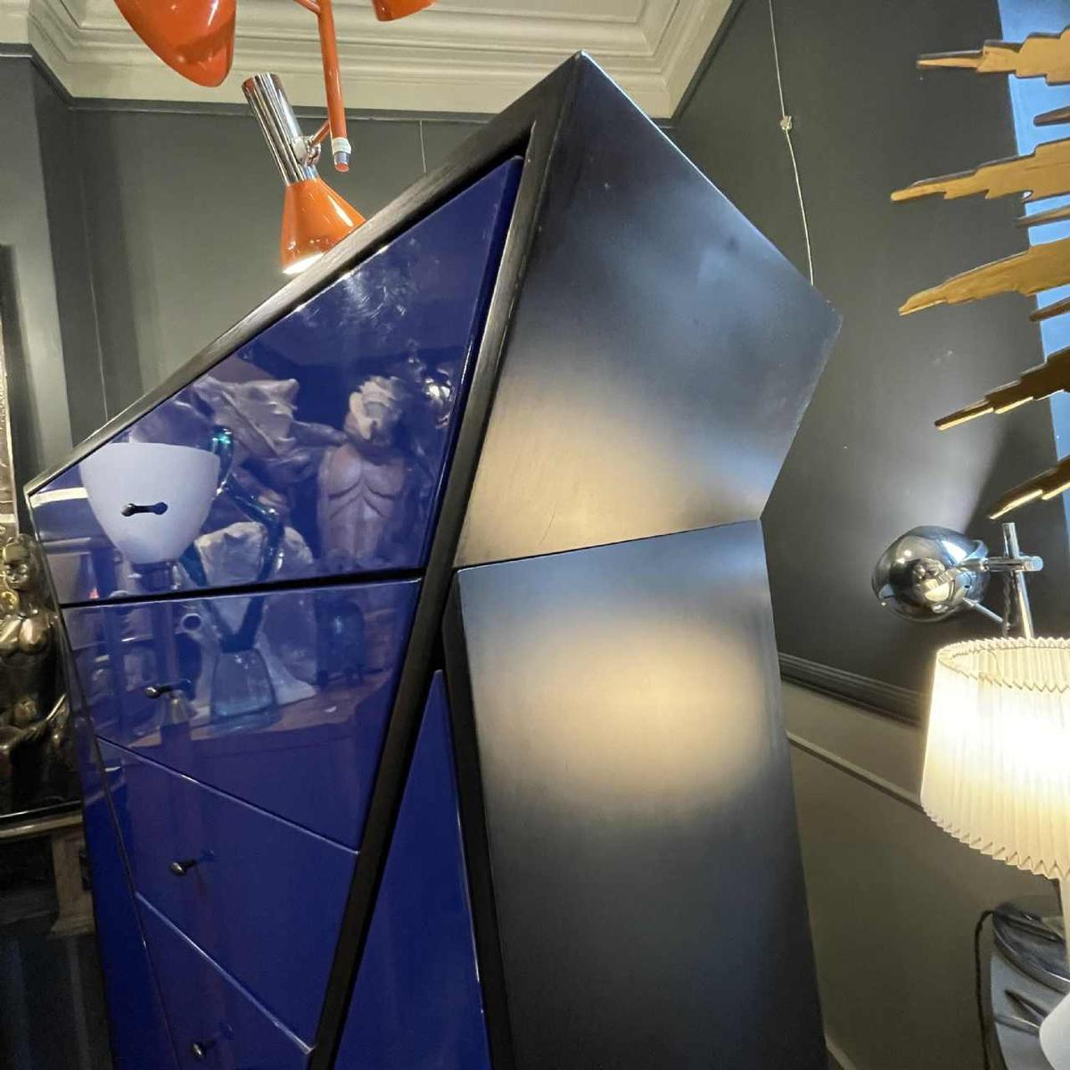 This form is only used to notify us of illegal content on product: MEMPHIS stijl blauw meubilair, commode & hoge kist met 4 laden, ca 1980.