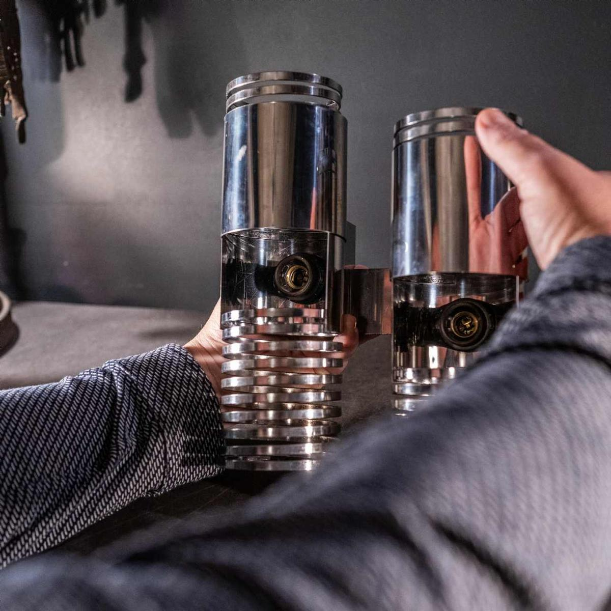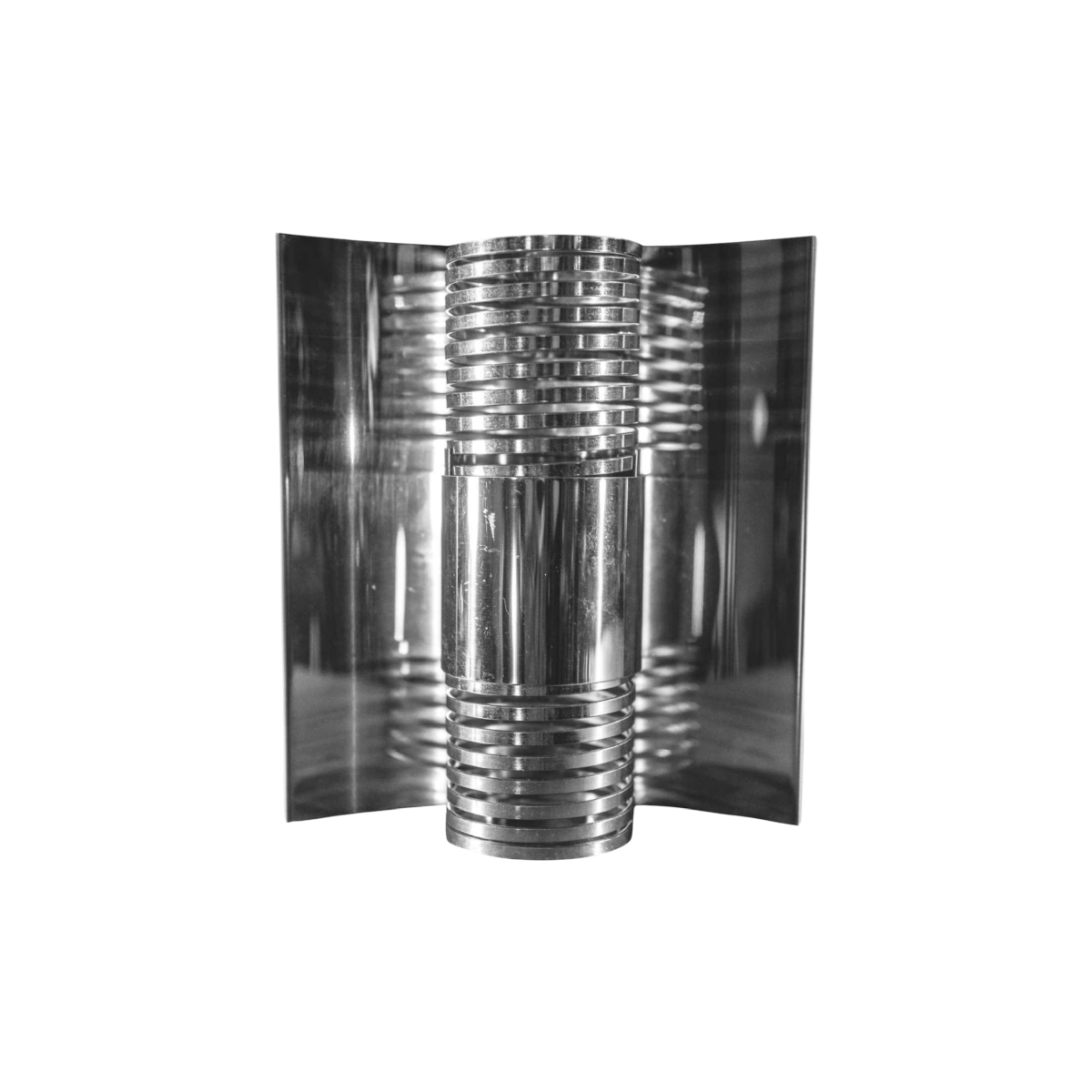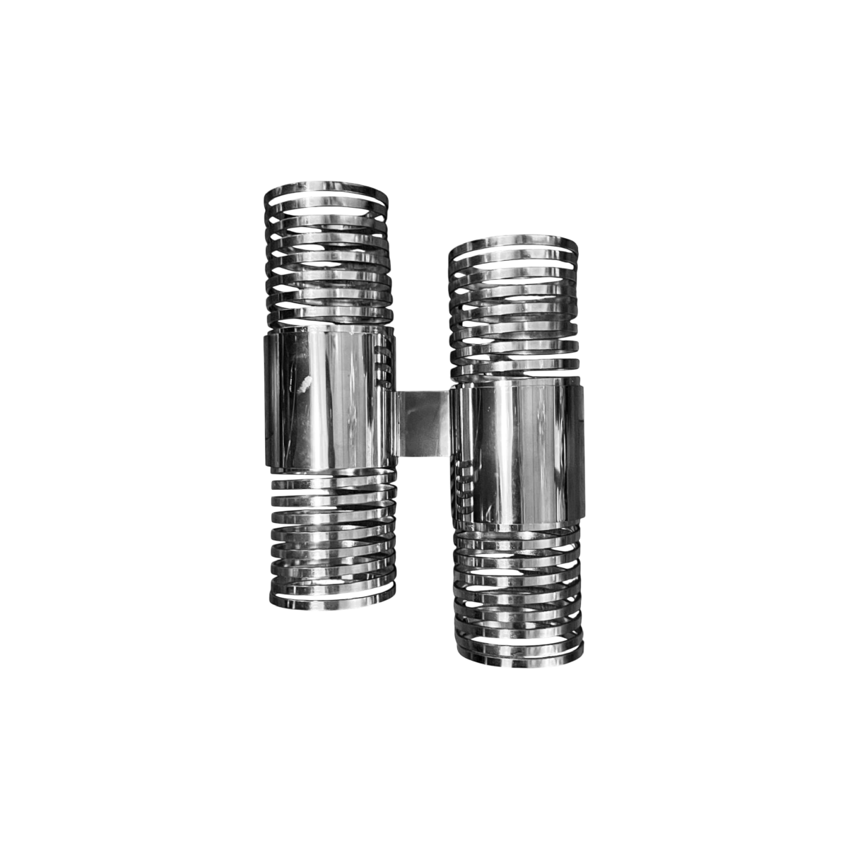 Set van 2 verchroomd stalen 'Spiral / Spring' wandlampen, Space Age stijl, dezelfde serie, verschillende modellen die perfect bij elkaar passen, circa 1970.