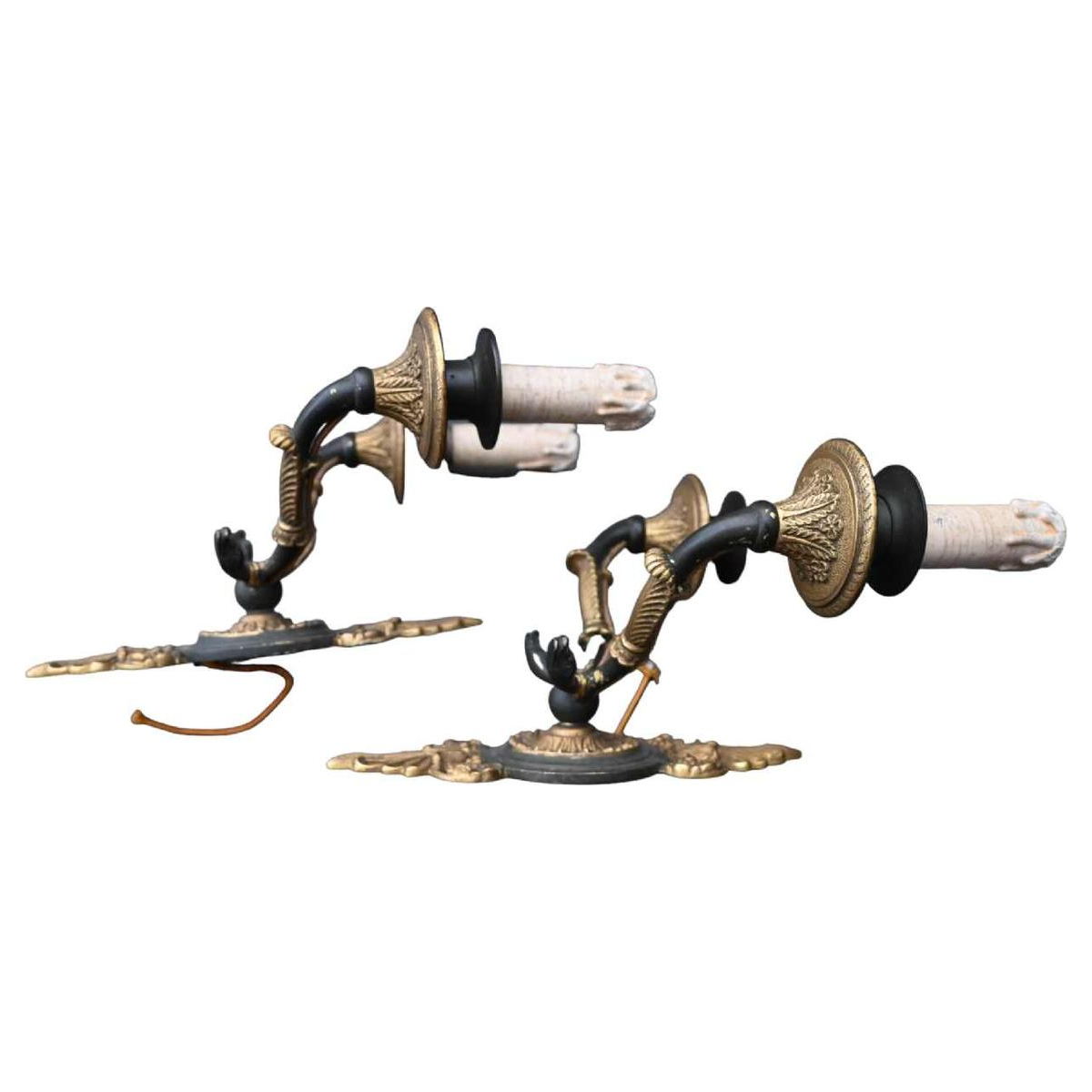 Paar Empire stijl verguld brons en gepatineerde wandlampen, eind 19e eeuw