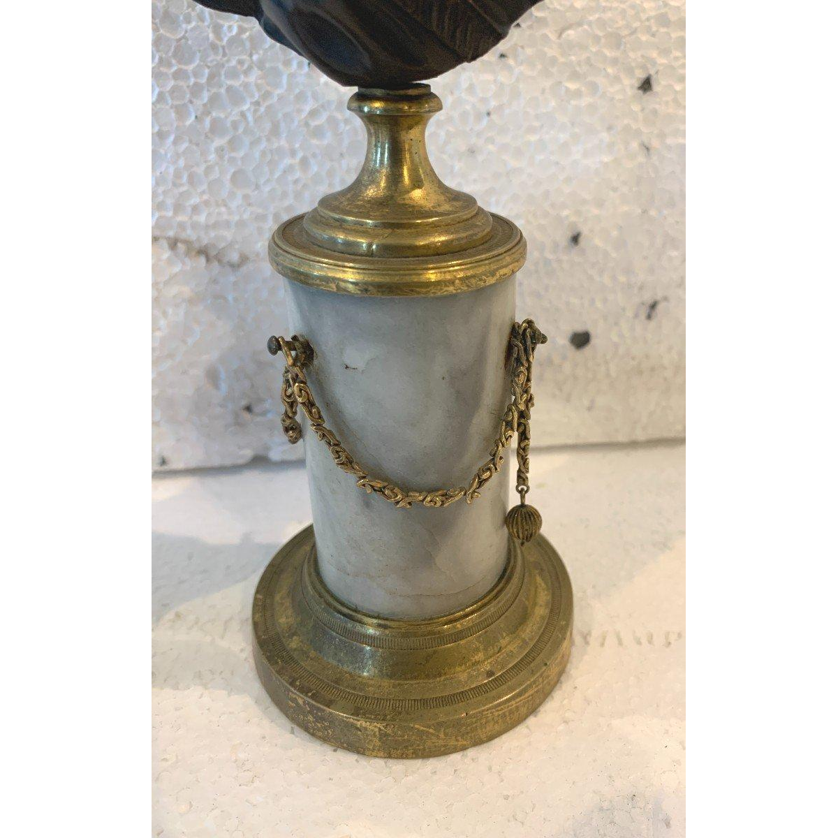 – Bronzen bustes: H 10 × B 9 × D 5 cm